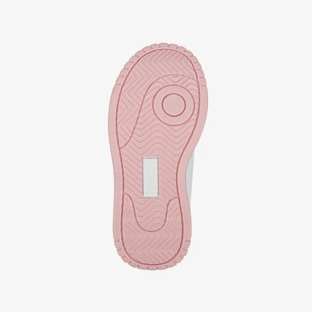 – Zapatilla casual para niña en color blanco con detalles decorativos y planta bicolor rosa/blanca.